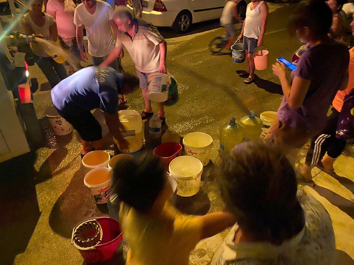 Vatandaşlar ellerinde damaca ve kovalarla tankerin önünde kuyruk oluşturdu.