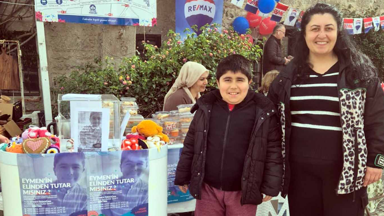 Yürümekte zorluk çekmeye başlayan Eymen Özdoğan, annesi Özlem Özdoğan, komşuları ve yakınlarının Ortakent Mahallesi’nde açtığı yardım standında kendisi için yardım topladı.