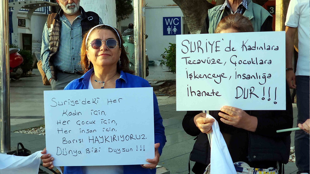 Muğla’nın Bodrum ilçesinde Suriye İçin Kadın İnisiyatifi tarafından “Suriyede Aleviler Kaçırılıyor Kadınlar Katlediliyor Susmuyoruz Ses Veriyoruz “ eylem ve basın açıklaması düzenlendi.