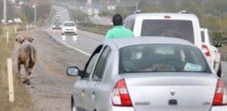 Yol üzerindeki bazı işyerlerine de zarar veren boğa, TEM yolu üzerindeki köprüyü geçip İkitelli köyüne geldi.KURBAN MANZARALARI