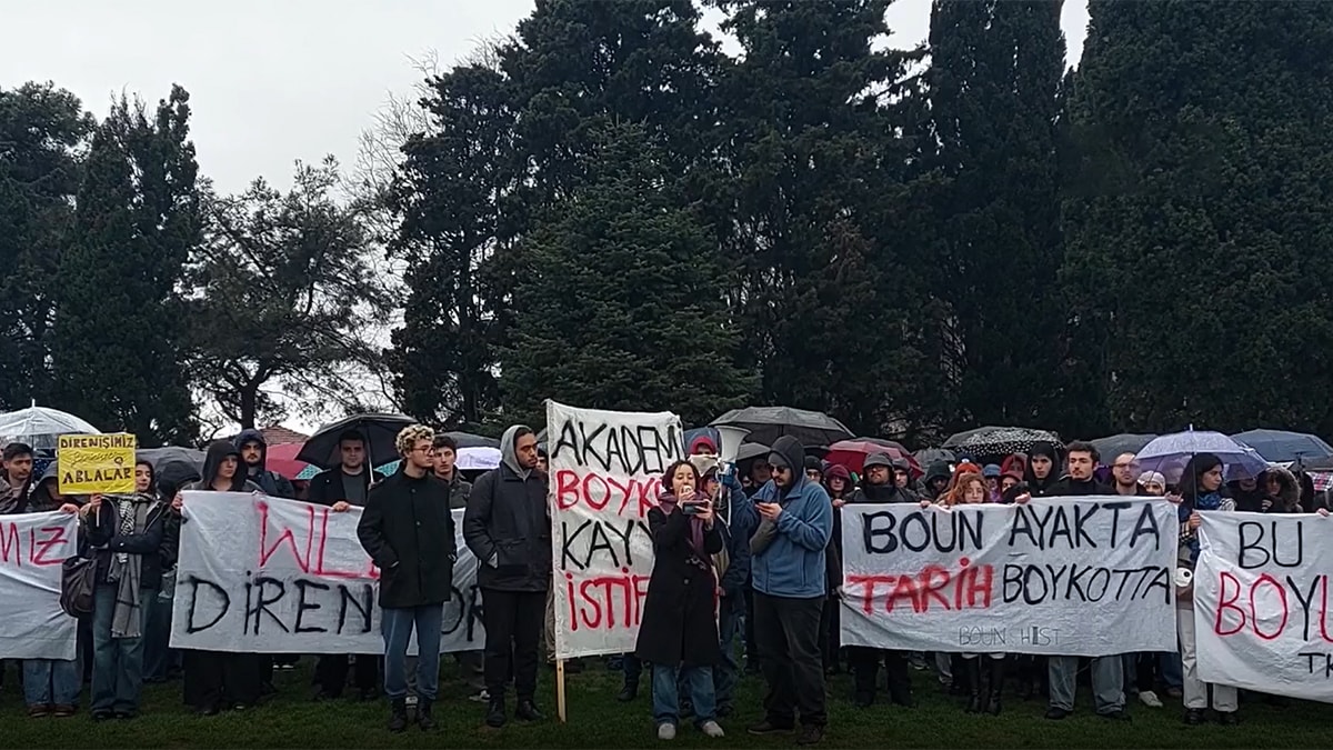 *Bizler bugün burada Boğaziçi Üniversitesi öğrencileri olarak tutuklanan sıra arkadaşlarımız ve ev hapsine çarptırılan 3 sıra arkadaşımızın yanında olduğumuzu haykırıyoruz. Demokratik haklarına sahip çıktığı için tutsak edilen arkadaşlarımızın uğradığı baskının hiçbir hukuki dayanağı yoktur.