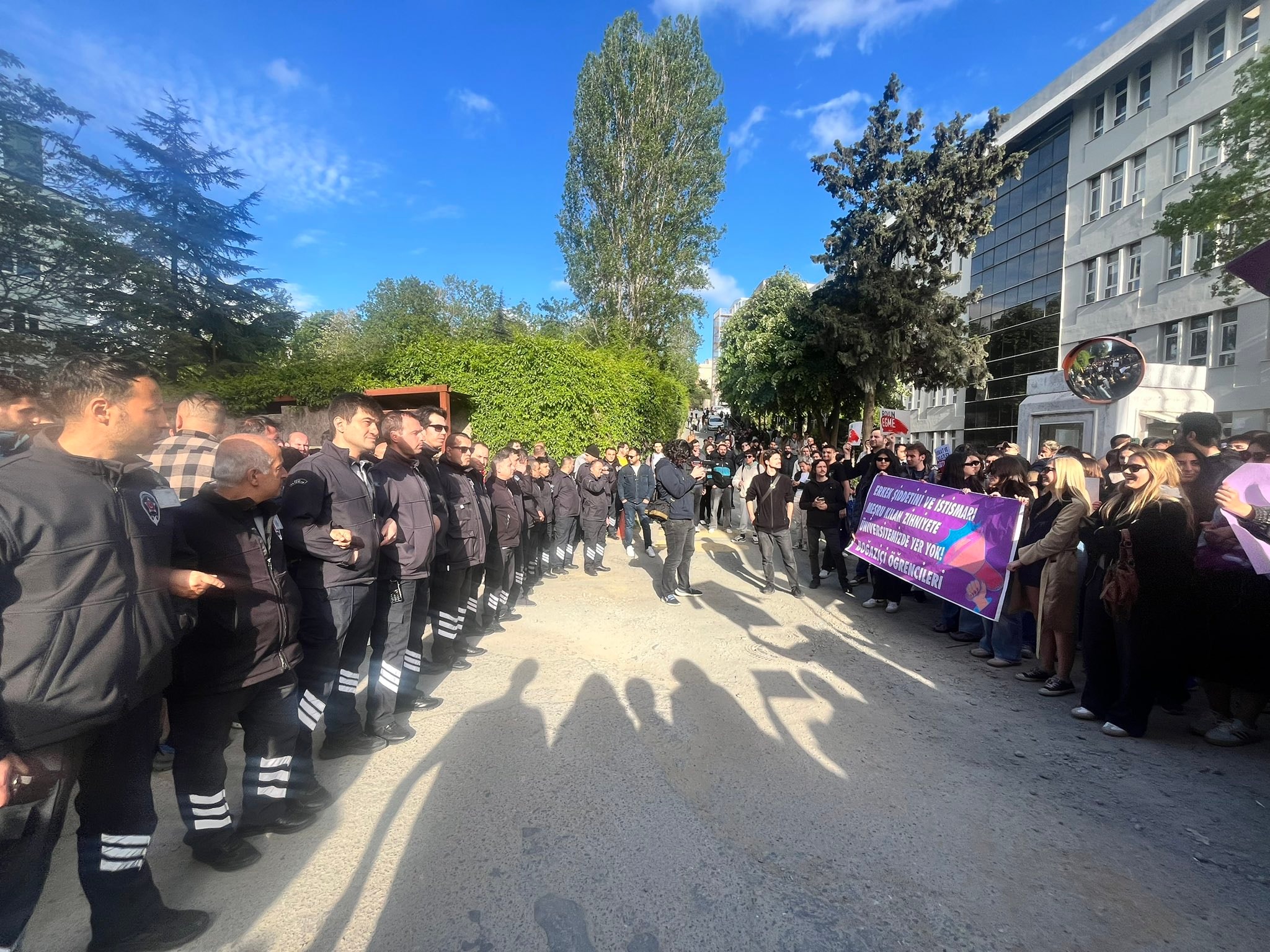 Etkinliğin düzenlendiği Kuzey Kampüs önünde bir araya gelen öğrenciler, “Üniversitemizde istismarcılara yer yok” sloganlarıyla yürüyüş yapmak istedi. Ancak öğrencilere önce özel güvenlik, ardından kampüse sokulan çevik kuvvet polisi müdahale etti. Polis ablukasına rağmen öğrencilerin protestosu devam etti.