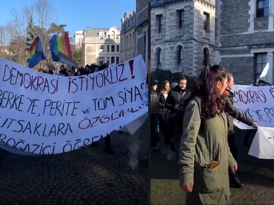 Üniversite kampüsünde, 'Demokrasi istiyoruz, Berke'ye, Perit'e ve tüm siyasi tutsaklara özgürlük' pankartı taşıyan öğrenciler, 'Üniversiteler bizimdir, bizimle özgürleşecek', 'Kayyum rektör istemiyoruz' sloganları atarak mevcut rektörü protesto etti, Boğaziçi protestoları sırasında tutuklanan arkadaşlarının ise serbest bırakılmasını istedi.