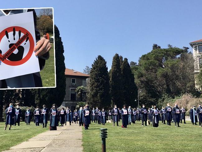 Güney Kampüs'te rektörlük binasına bir kez daha sırtını dönerek eylem gerçekleştiren öğretim üyelerinin gündeminde bugün davası görülen, Boğaziçi protestoları sırasında tutuklanan ve gözaltına alınan öğrenciler de vardı.