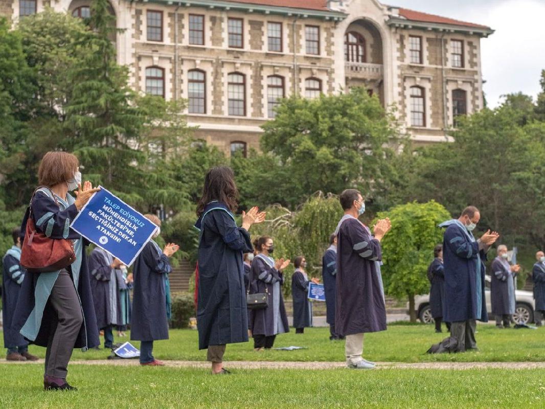 * Kandilli Rasathanesi ve Deprem Araştırma Enstitüsü ve Yabancı Diller Yüksek Okulu da dahil olmak üzere üniversitemizdeki tüm birim, fakülte ve enstitülerin müdür ve koordinatörleri seçimle göreve gelmelidir. Şeffaf ve demokratik yollardan belirlediğimiz Sosyal Bilimler Enstitüsü ve Fen Bilimleri Enstitüsü müdürlerimiz ve Mühendislik Fakültemizin seçilmiş dekanı bir an önce görevlerine atanmalıdır. Bir kez daha atanmış Melih Bulu, Gürkan Kumbaroğlu, Naci İnci, Fazıl Önder Sönmez’in, bir gecede kurulan Hukuk Fakültesi’ne atanmış Selami Kuran ve görevlendirilmiş Muzaffer Eroğlu’nun istifasını talep ediyoruz. Kabul etmiyoruz, vazgeçmiyoruz!