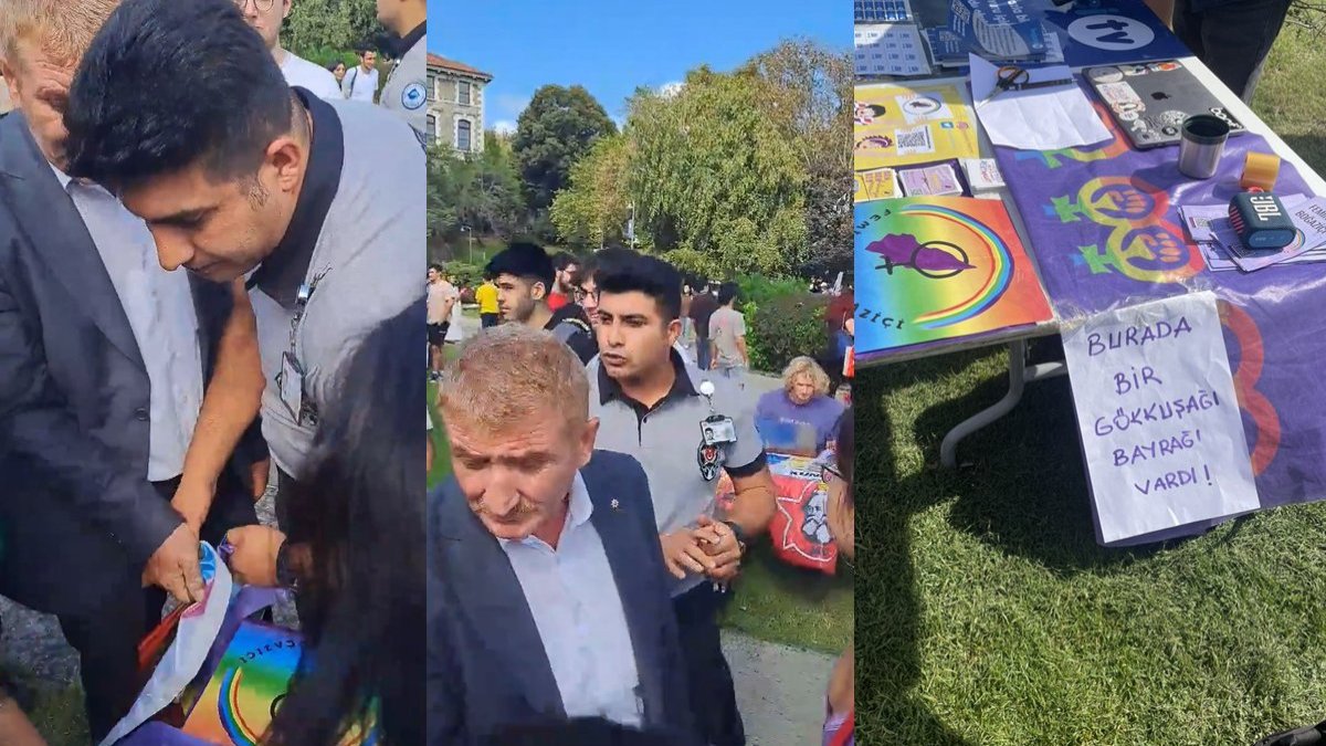 Boğaziçi Üniversitesi’ne yeni başlayan öğrenciler için oryantasyon programı düzenlendi. Program kapsamında kampüste stant açan Feminist Boğaziçili grubun masasındaki gökkuşağı bayrağı ‘izni yok’ denilerek güvenlik görevlilerince alındı.