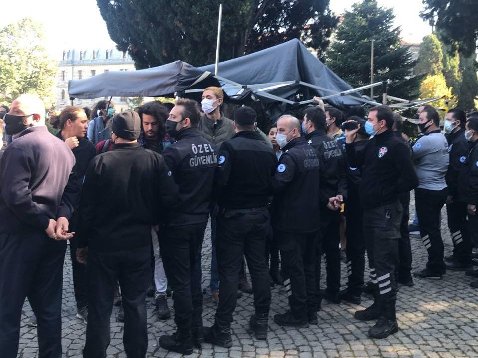Öğrencilerle güvenlik görevlileri arasında arbede yaşandı. Bu sırada çadırın yırtıldığı ve güvenlik görevlileri tarafından çadıra el konulduğu belirtildi. Yaşanan arbedenin ardından Çevik Kuvvet ekiplerinin de kampüs içine girdiği ifade edildi. O anlar Boğaziçi TV tarafından sosyal medyada paylaşıldı.