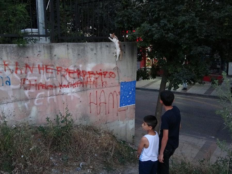 Kedinin yanına gelen çocuklar, kedinin iple okulun bahçe duvarının demir korkuluklarına asıldığını gördü. Çocuklar durumu çevreden geçen vatandaşlara iletti. Gördükleri manzara karşısında şoke olan vatandaşlar durumu Sultangazi Belediyesi Veteriner İşleri Şefliğine bildirdi.