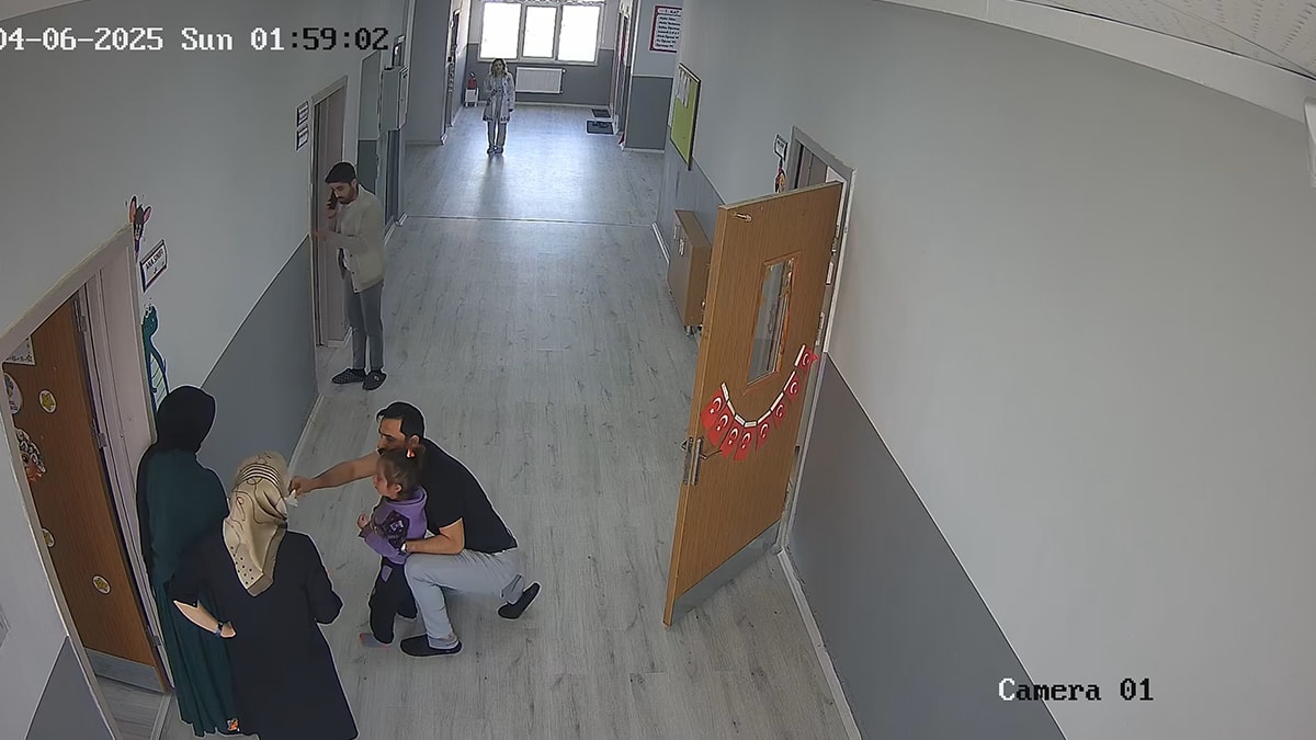 Olay, okulun koridorundaki güvenlik kamerasına yansıdı.
