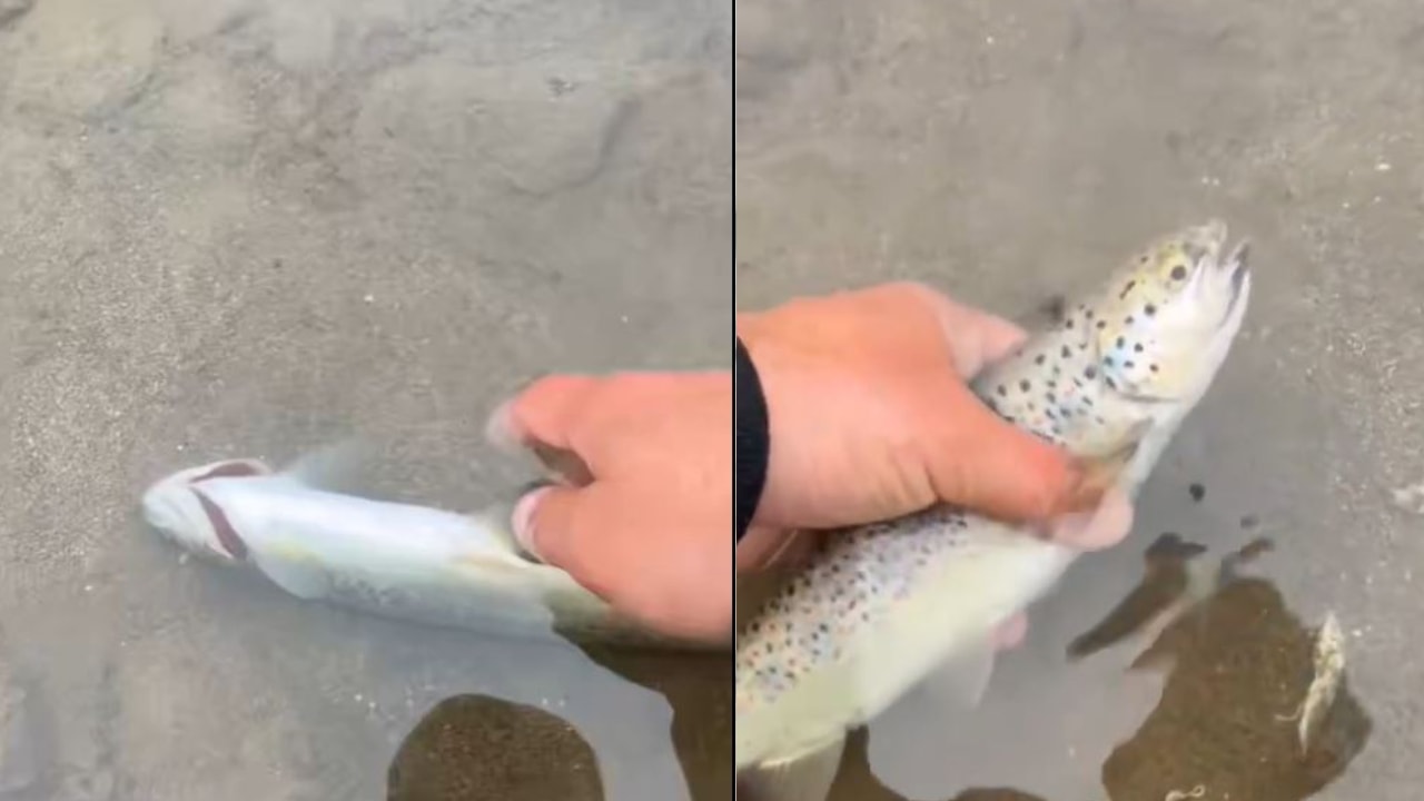 TikTok’ta paylaşılan görüntülerde Kanca, suyun kenarında hareketsiz halde duran balığın ağzında sıkışmış bir cisim olduğunu fark ediyor.