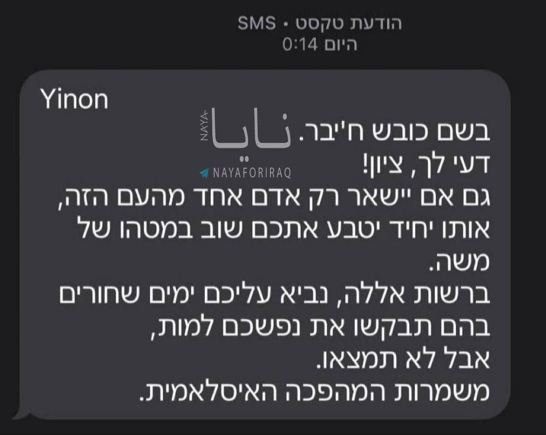 İsrail'de binlerce sivilin telefonuna aynı anda İran Devrim Muhafızları imzalı tehdit mesajları gönderildi. İbranice mesajlarda İsraillilerin "karanlık günler göreceği" tehdidi yer aldı.