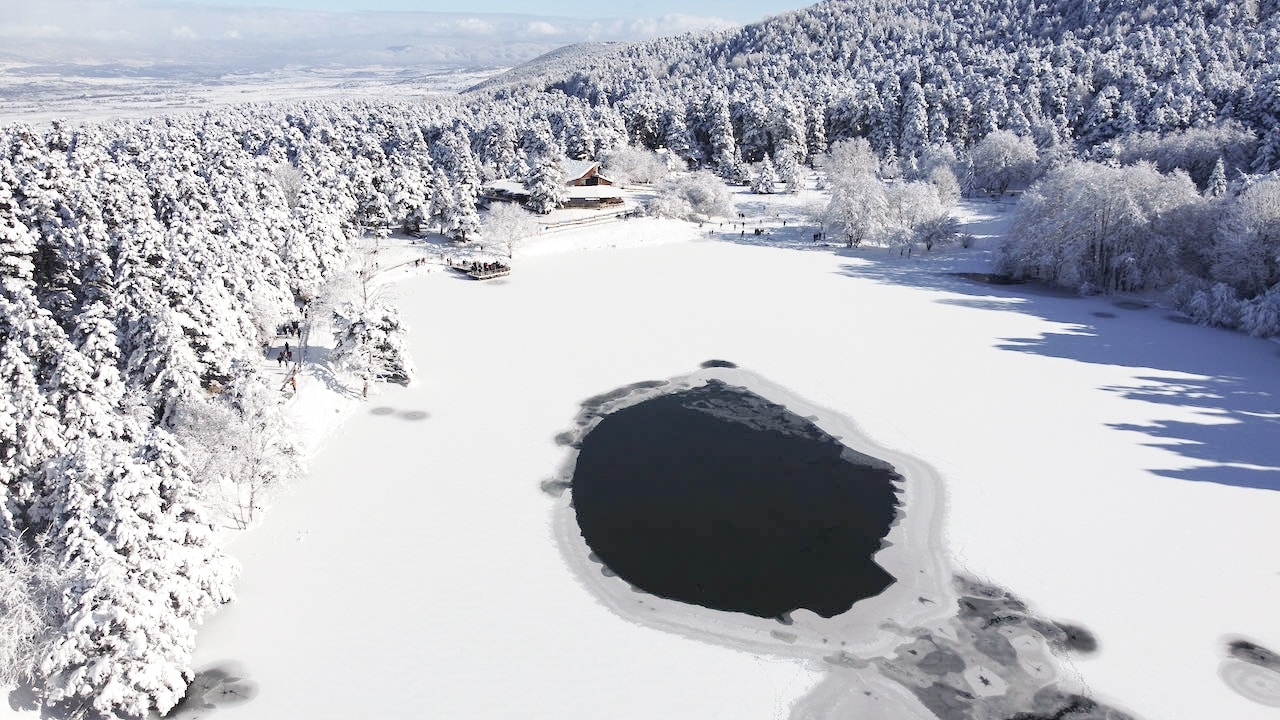 Öte yandan "Tabiatın kalbi" olarak adlandırılan Bolu Gölcük Tabiat Parkı'ndaki gölün yüzeyi buzla kaplandı.