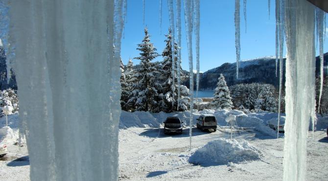 Eksi 20.1 ile Bolu`nun en soğuk ikinci bölgesi olan Abant Tabiat Parkı`nda otellerin ve restoranların çatılarında uzun buz sarkıtları oluştu. Pencere boylarını geçen buz sarkıtları, zemine kadar uzandı. Soğuk hava nedeniyle gölün kıyı bölgeleri de buz tuttu. Göl etrafında yürüyüşe çıkan tatilciler, güneşe rağmen soğuktan şikayet etti.