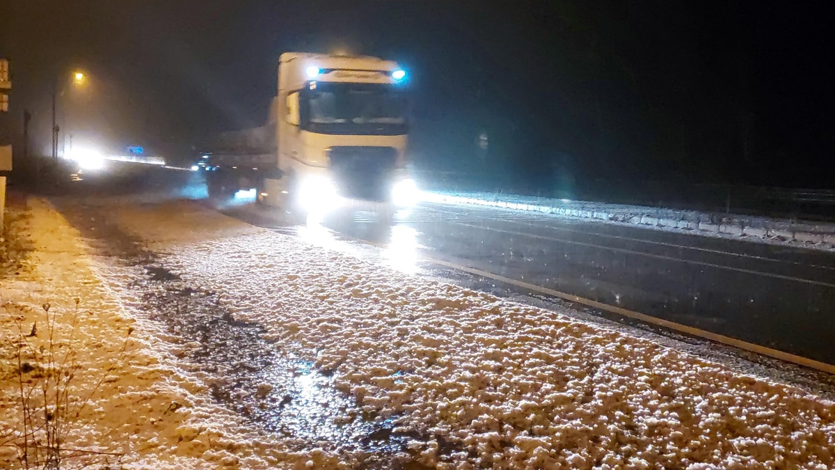 Sürücüler karlı yolda yavaş yavaş ilerlerken, Karayolları ekipleri de küreme çalışması yaptı. Bazı yerlerde kar kalınlığı 5 santimetreyi buldu.