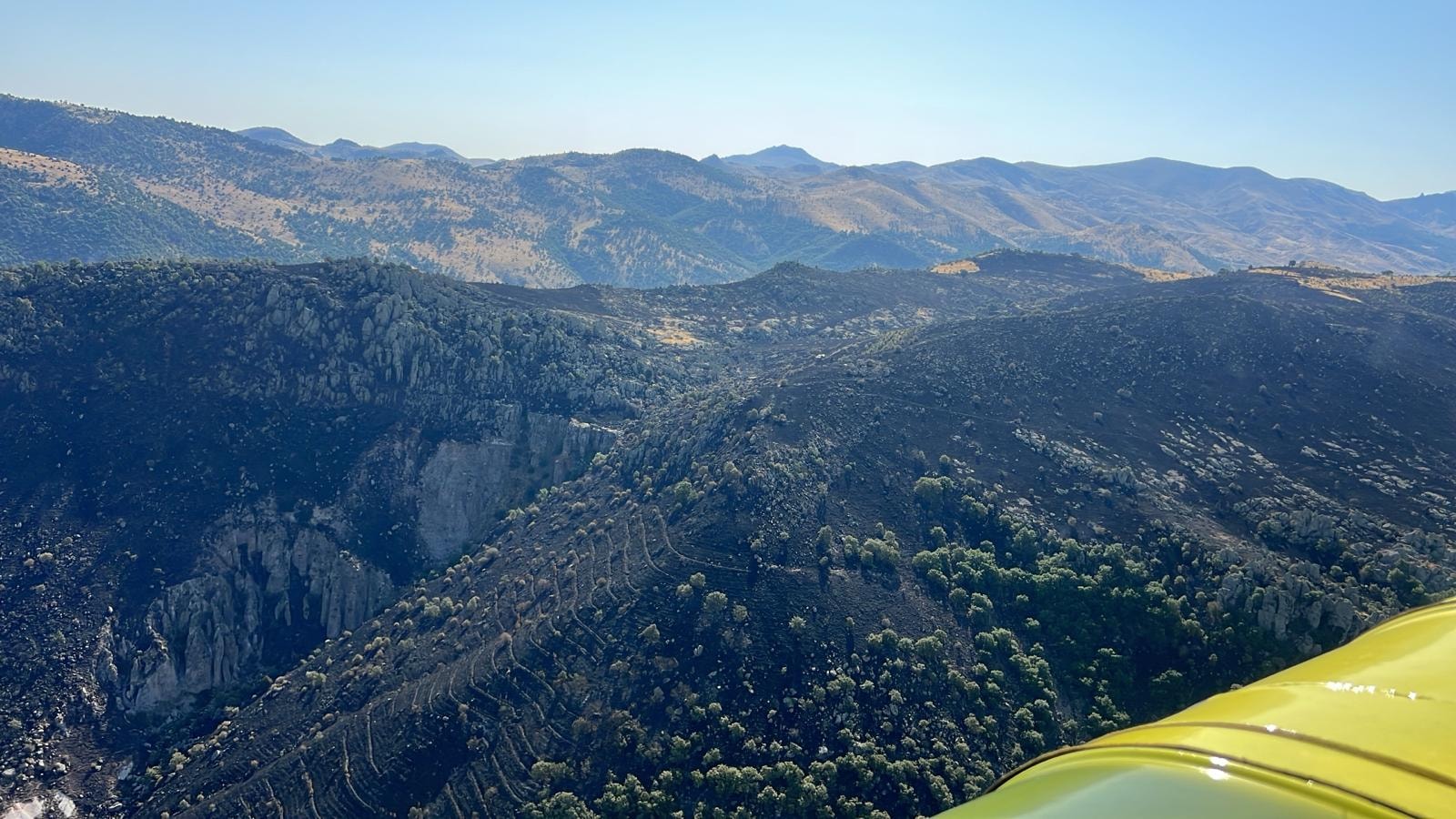Henüz çıkış nedeni belirlenemeyen yangın, engebeli arazi ve bodur ağaçlık alanlarda etkili oldu. İhbar üzerine bölgeye itfaiye araçları, Orman İşletme Müdürlüğü’ne ait 6 arazöz, 2 su ikmal aracı, dozer, treyler ve helikopter sevk edildi.
