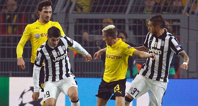 Karşılaşmaya hızlı başlayan Juventus, 3. dakikada Borussia Dortmundlu oyuncu Neven Subotic’in, Alvaro Morata ile girdiği mücadelede kaybettiği top Carlos Tevez’e geldi. Tevez, ceza sahası dışı çaprazından attığı şutla topu filelerle buluşturdu ve takımını 1-0 öne geçirdi.