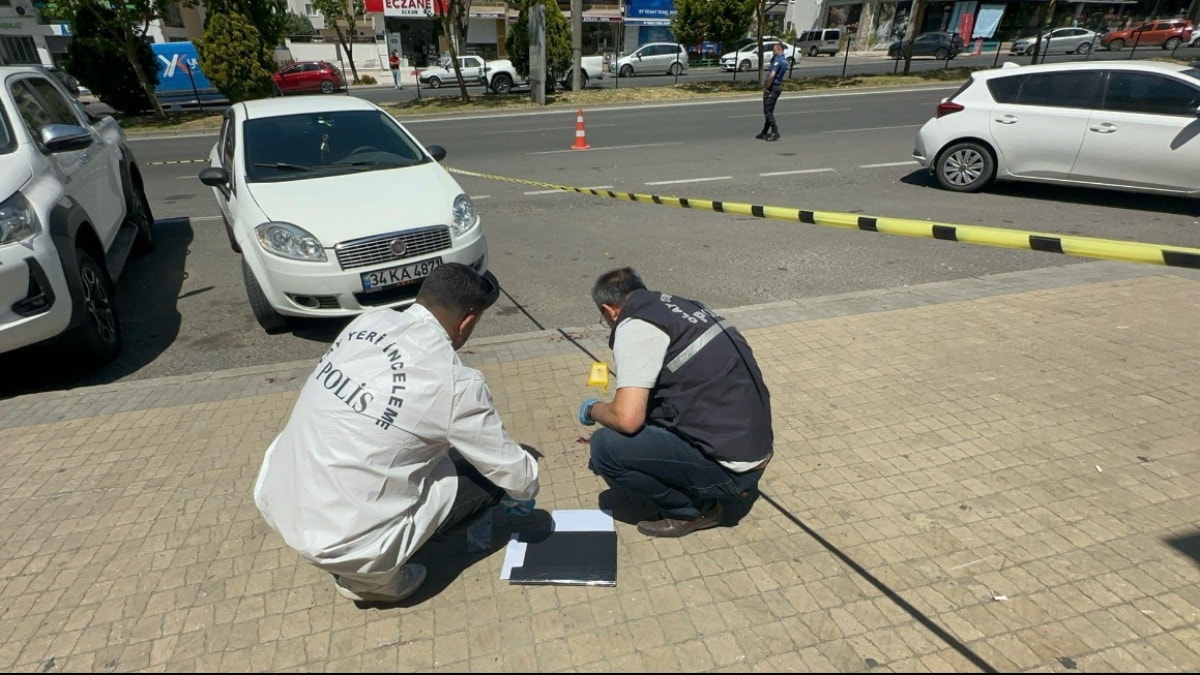 Olay yerinde inceleme yapan polis, Samet Kaya'yı yakalamak için çalışmalarını sürdürüyor.