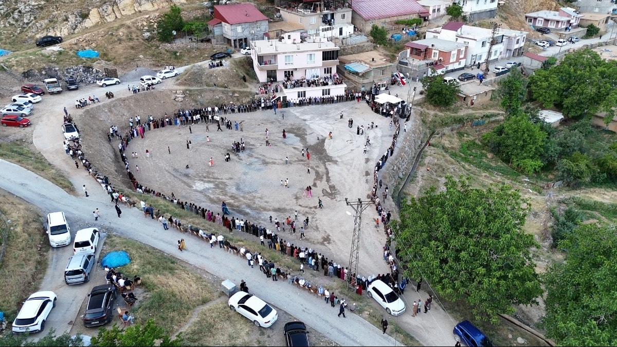 Halay zinciri dronla görüntülendi. Düğünde çifte 2 milyon lira değerinde altın ve döviz takıldı.