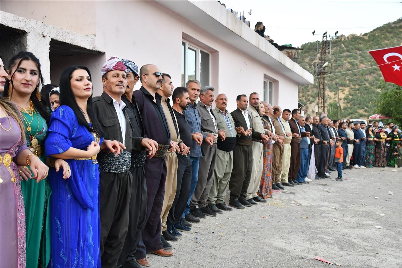Düğünde davetlilere 350 kilo etli yemek ikram edildi. Davetliler, yöresel giysileriyle Kürtçe ve Türkçe müzikler eşliğinde uzun halay zinciri oluşturdu.