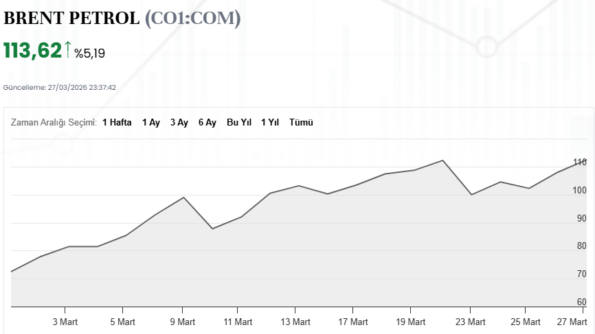 Petrol fiyatları ABD ve İsrail'in, İran'ın sanayi ve nükleer tesislerini hedef almasının ardından yükseldi. Brent petrolün varil fiyatı, yüzde 5'in üstünde artışla 113,62 dolar seviyelerine ulaştı. Aynı dakikalarda Batı Teksas türü (WTI) ham petrolün varili 101,02 dolardan alıcı buldu. Brent petrolde teknik olarak 114,68 doların direnç, 111,03 doların ise destek olarak izlenebileceği belirtiliyor.
