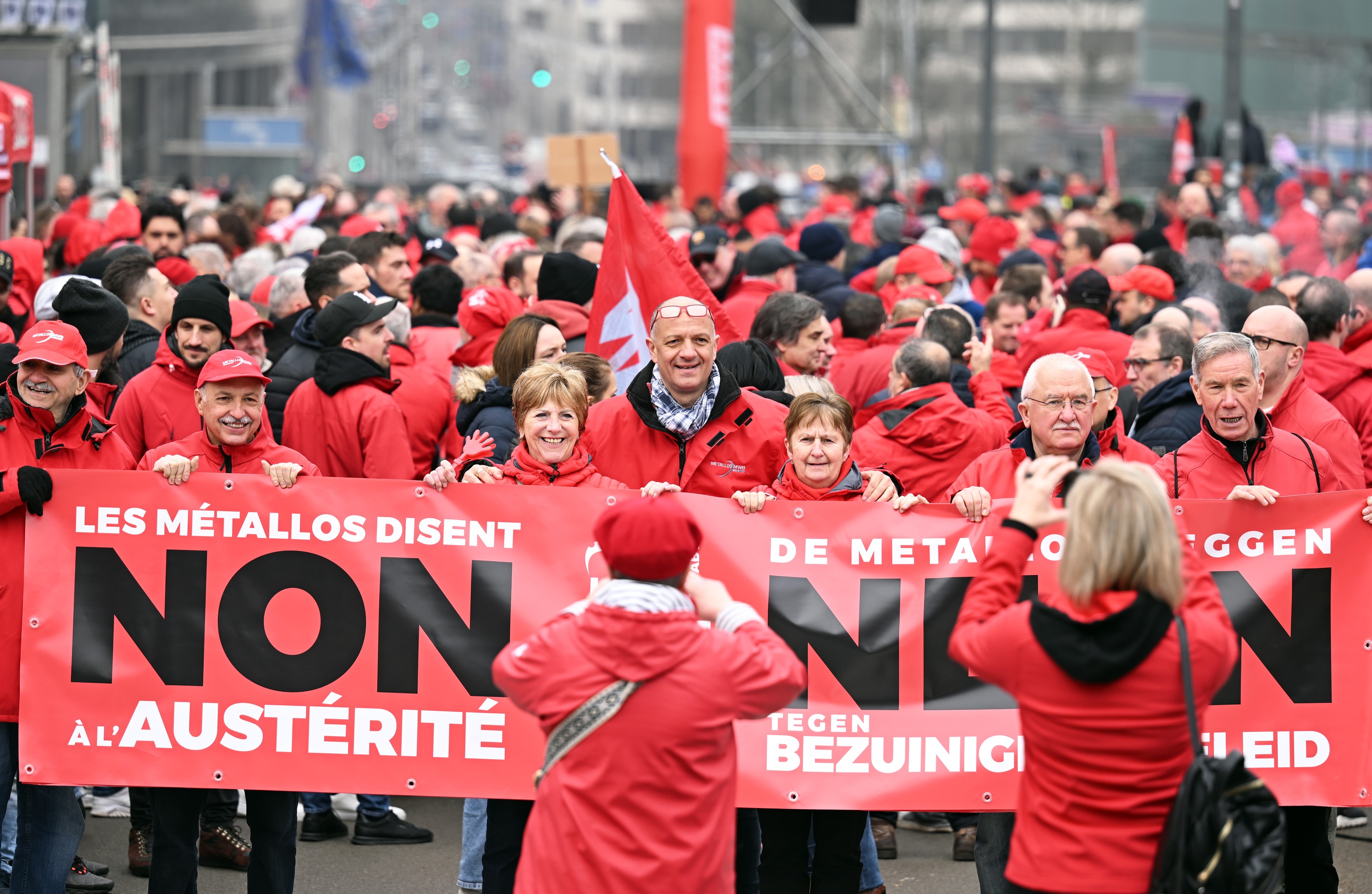 Avrupa'da kemer sıkma politikalarına yeniden başlanmasını protesto eden işçiler, AB mali reformunun Belçika'yı sosyal harcamaları kısıtlamaya iteceğini savunuyor.