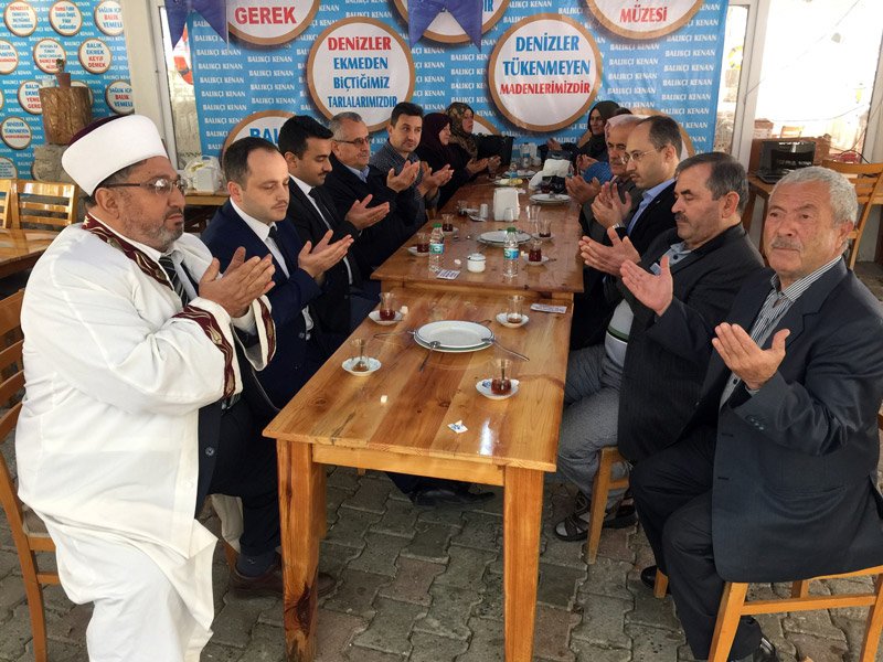 Balık tezgahındaki; “Derya kuzusu bunlar, canlı canlı..” şeklindeki bağırışlar yerini duaya bıraktı. Görenlerin şaşkınlıkla izlediği o ilgi çekici anlarda din adamları; “Allah’ım bu mevsimde bize bu tezgahlarda iri iri balıklar görmemizi nasip eyle, balık bol olsun ucuz olsun herkes yesin, herkese şifa olsun, balıkçımızın da halkımızın da yüzü gülsün. Denizdeki balıkçımızı kazadan beladan koru Yarabbi” şeklinde dua etti. Din görevlilerinin yakarışına çevredeki vatandaşlarda ‘Amin’ diyerek eşlik etti.