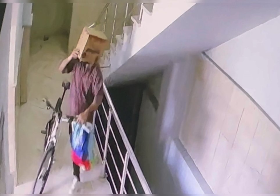 Binaya başında kutu ile giren hırsız bisikleti çalarak kayıplara karıştı. Saatler sonra bisikletinin yerinde olmadığını fark eden Yiğit Arslan, binanın güvenlik kamerası kayıtlarını izledi.