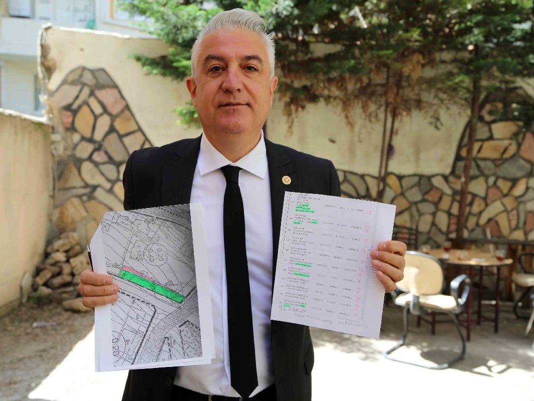 "Araziyi belediyeye sorduğumuzda imarı olmadığını öğrendik. Bu parsel çekme alanında kalıyor. 242 metrekarelinin 230 metrekaresin çekme alanında. Bu vatandaşı kandırmaya girer mi girmez mi? Satılan yerlerin çoğunda ”terler yapılmamış. Makilik, fundalık, yola terki yapılmamış alanlar. Nedir bu aceleniz? Siz önce bu alanları düzgün bir parsel vasfına getirin ondan sonra satın."