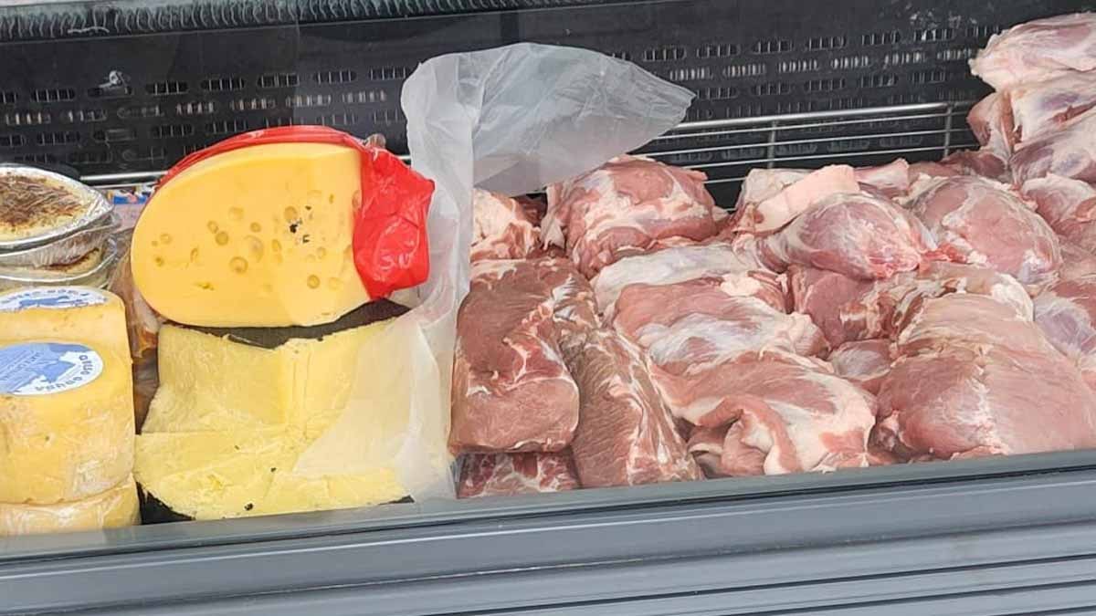 X'te günün en çok konuşulan görsellerinden biri olan karede, bir vitrinin kenarına yığılmış çiğ etlerin, sadece ince bir plastik örtüyle ayrılarak, tüketime hazır peynirlerle yan yana sergilendiği görülüyor.
