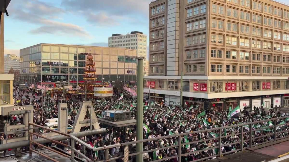 Alman basınına göre 2 binden fazla Suriye'li Berlin'de Alexanderplatz'da toplanarak bayraklar salladı, kutlama yaptı. Grup, daha sonra Zafer Anıtı'na kadar yürüdü.