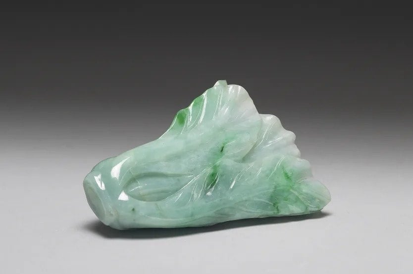 Dünyanın en pahalı lahanası olarak bilinen yeşim taşından oyulmuş Çin lahanası, 18,3 santimetre yüksekliğindeki bu eser, beyaz ve yeşilin doğal geçişlerini taşıyan yeşim taşından tek bir blok halinde oyuldu. Yapraklarının arasına gizlenmiş çekirge ve ağustos böceği detayı, heykelin canlı görünümünü pekiştiriyor. Heykeltıraşın taşın doğal damarlarını sap dokusu gibi kullanması, ustalığın en dikkat çeken örneklerinden biri olarak değerlendiriliyor.
