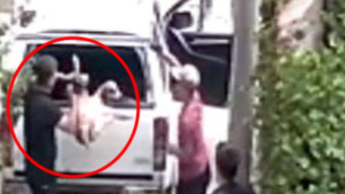 Belediye ekibi daha sonra topladıkları köpekleri geldikleri aracın kasasına fırlattı, o anlar bir evin güvenlik kamerasına yansıdı.