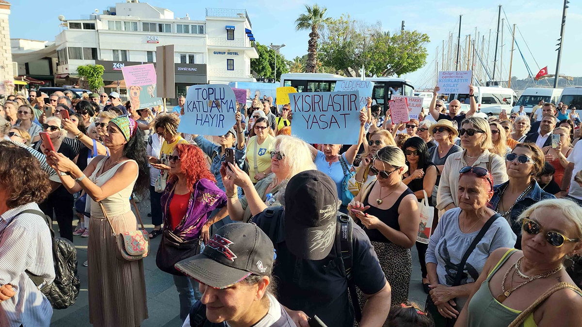 Muğla’nın Bodrum ilçesinde aralarında Bodrum Hayvan Hakları Derneği üyelerinin de bulunduğu hayvanseverler tarafından düzenlenen Öldürme Yaşat eylemine yaklaşık 600 kişi katıldı.