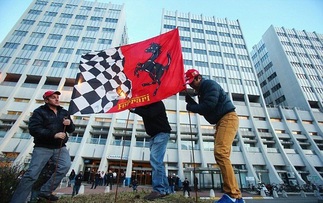 Fransa ve İtalya'dan Ferrari klüpleri de Grenoble'deki hastanenin önündeki kutlamalara katıldı.