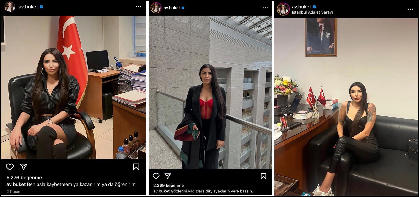 İstanbul Barosu'na bağlı olan ve on binlerce takipçisi bulunan avukat Buket Nurşah Tekışık'ın, Çağlayan Adliyesi'nde görevli bir savcının odasında çektirdiği fotoğrafları sosyal medyada paylaşması gündem oldu.