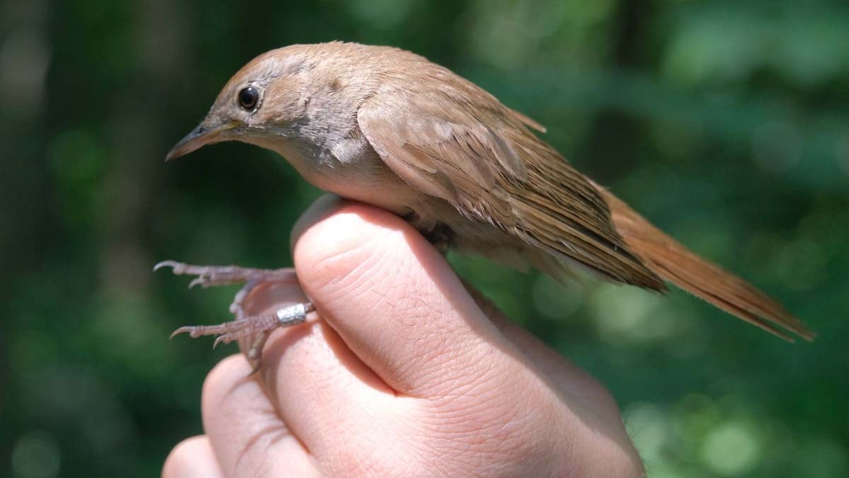 İstasyonda 28 Ağustos 2023'te halkalanan bir bülbül (Luscinia megarhynchos), 9 ay sonra tekrar ağlara yakalandı.