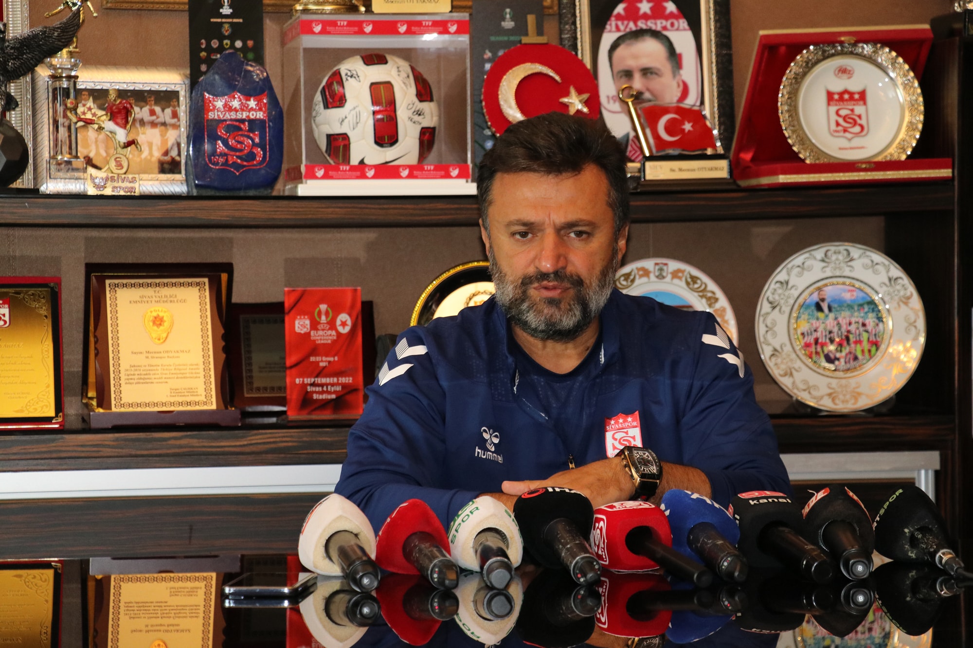 "İsteyen 3-4 takım var. Bu takımlardan ekonomik anlamda istediğimiz katkıyı almazsa yönetimimiz bırakmak istemiyor. Rey Manaj'a özel antrenmanlarını yaptırıyoruz. Rey Manaj, Sivas ile bütünleşti. 3-4 takımdan teklif var ama bizim istediğimiz seviyede değil. Ekonomik anlamda o paralara dönüp bakmıyoruz. 6-7 milyon avrolar teklif ediliyor, kabul etmiyoruz. Zaten 1 haftası var ve 1 hafta sonra bireysel antrenmanlardan çıkıp ekibimize dahil olacak."