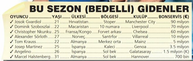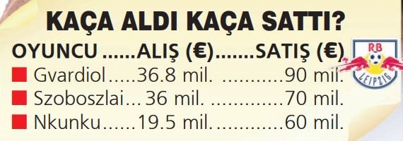 RB Leipzig’in en büyük özelliği, genç oyuncuları transfer edip parlattıktan sonra yüksek bedellerle satması. Red Bull’un takımı, bu yaz döneminde 240 milyon Euro kazanırken transfere 126 milyon Euro harcadı. Gvardiol, Szoboszlai ve Nkunku; kulüp tarihinin en yüksek bedelli üç satışı olarak kayıtlara geçti. RB leipzig, Openda’yı (23) 43, Baumgartner (23) ve Sesko’yu (20) 24’er, Seiwald’u da (22) 20 milyon Euro’ya renklerine kattı.
