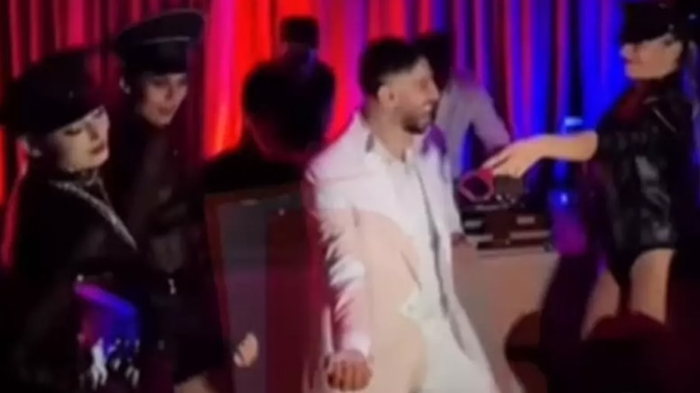 Sahneye çıkan dansçılar, polis konseptli kostümler içindeki şovlarıyla dikkat çekti. Kelepçeler, kırbaçlar ve ışık oyunları eşliğinde eğlenen damat Burak Bulut ve Eda Sakız ilginç konsept tercihleriyle dikkat çekti.
