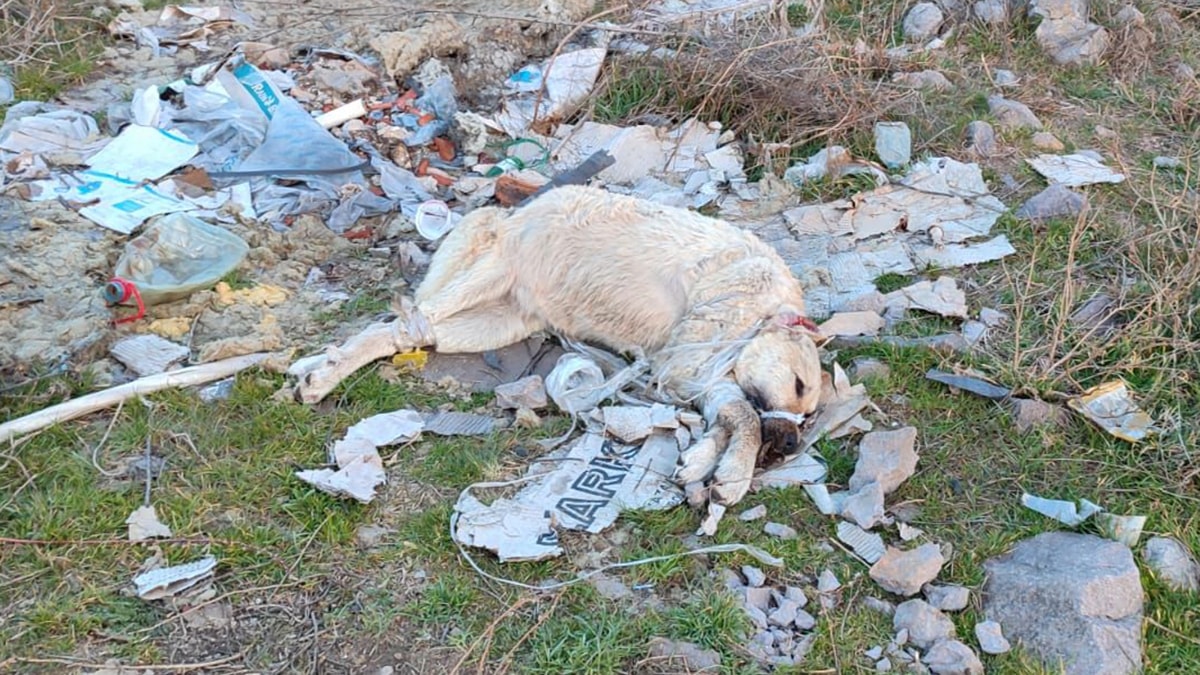 Dün akşam saatlerinde sokak hayvanları için besleme yapan hayvanseverler, boş arazide ağzı ve ayakları plastik kelepçe ile bağlı, ölü köpekle karşılaştı.