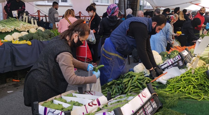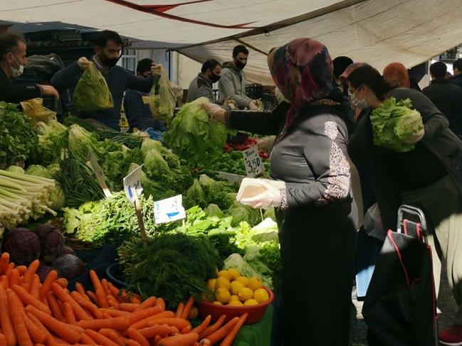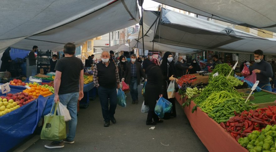 Alışveriş yapan vatandaşların maske taktığı, ancak pazar içinde ve tezgâhların önünde tezgâhların önünde sosyal mesafe kuralını ihlal ettikleri görüldü.