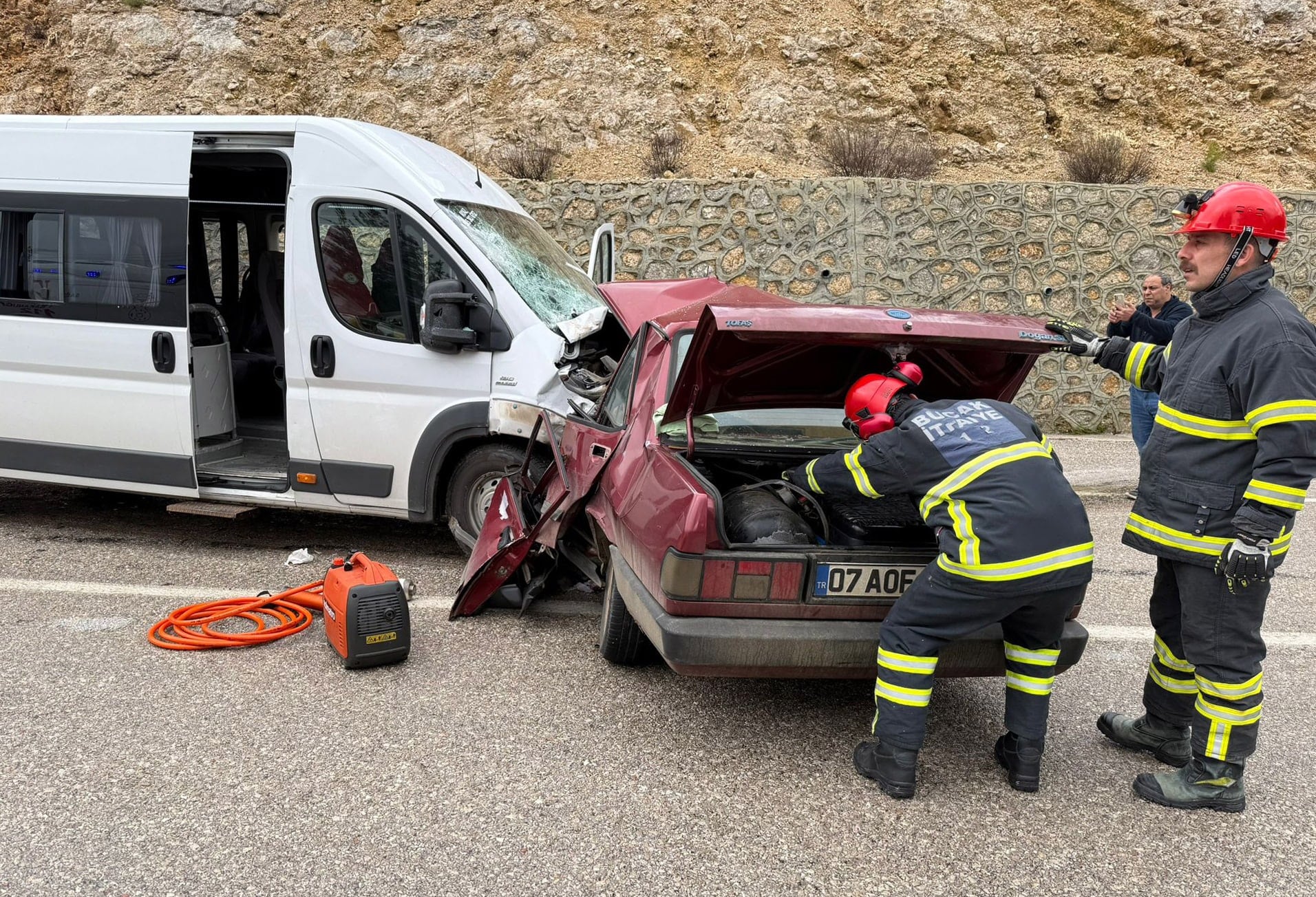 Mehmet Çelen idaresindeki otomobil ile karşı yönden gelen Necati Ayaz (56) yönetimindeki minibüs, kafa kafaya çarpıştı.