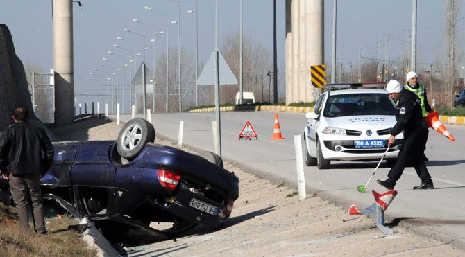 TOKAT'ta sürücüsünün direksiyon kontrolünü yitirdiği otomobil, orta refüjdeki iki ayrı aydınlatma direğini yıkıp ters dönerek yolun karşı tarafına savrulup 180 metre sürüklendi. Sürücü 25 yaşındaki Mikail Yancı, kazayı hafif sıyrıklarla atlattı.