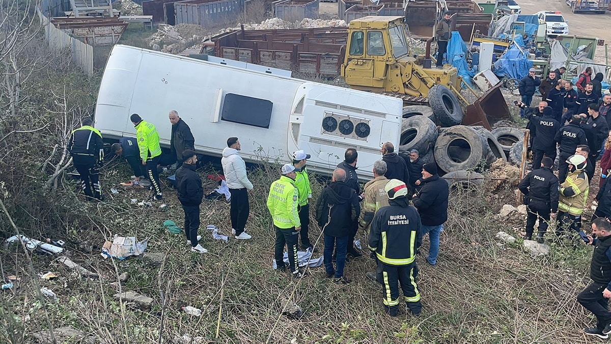Bursa'nın Gemlik ilçesinde TIR’ın arkadan çarptığı işçi servis otobüsü şarampole devrildi. Kazada otobüste bulunan 1'i ağır, 9 kişi yaralandı.