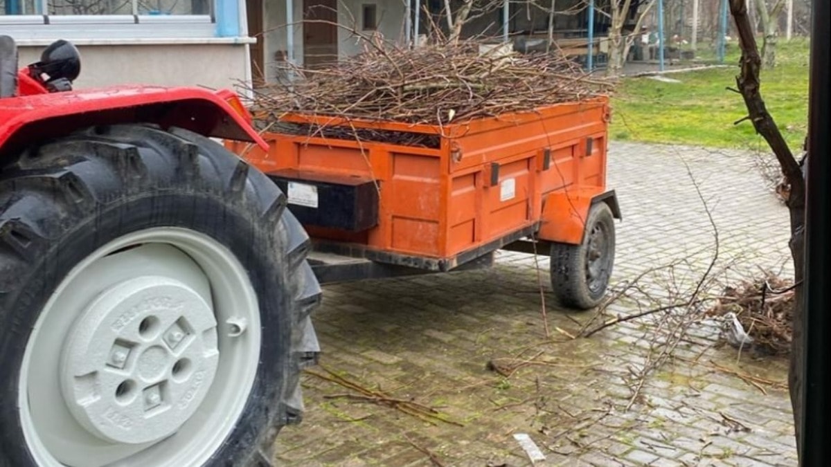Odun yüklediği, park halindeki traktör römorkunun üzerine çıkan Orhan Şentürk, bir anda dengesini kaybederek düştü.