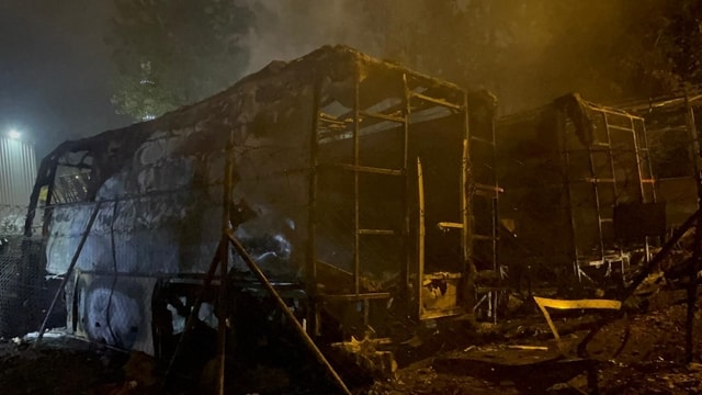 Yangında üç karavan tamamen yanarak hurda haline gelirken, kamyonda da kısmi hasar meydana geldi. Olayda ölen ya da yaralanan olmadı.