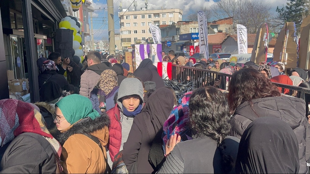 Ucuz eşya almak isteyenler, sabahın erken saatlerinde mağazanın önünde toplandı.