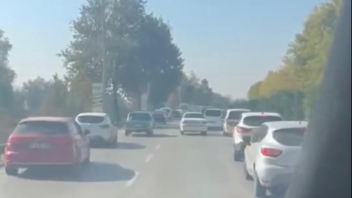 Metrelerce uzayan trafikte, sürücülerin nizami şekilde yol vermesini sağlık ekibi, cep telefonu kamerasıyla kaydetti.