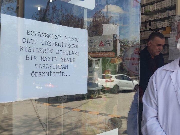 Eczacılar ise işyerlerinin camlarına "Buradaki veresiye borçlar hayırsever bir kişi tarafından ödenmiştir" notunu astılar. (İHA)