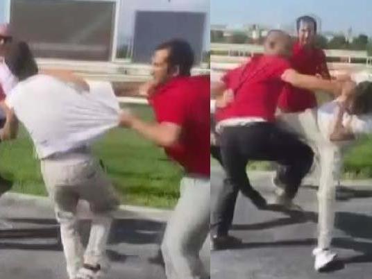 Tartışma, büyüyerek kavgaya dönüşünce taraflar da birbirlerine tekme- tokat saldırdı. Kavga, çevredekiler tarafından cep telefonu kamerasıyla kaydedildi. Çevredekilerin ayırdığı taraflar, bölgeden uzaklaştırıldı. (DHA)